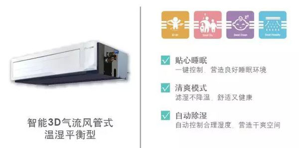 大金全效家用中央空調(diào)就有一檔睡眠模式,通過溫濕平衡的功能,來調(diào)整室內(nèi)的溫濕度。