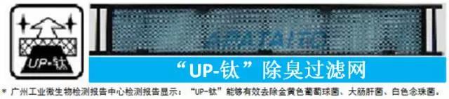 ·“UP-鈦”除臭過濾網(wǎng):采用鈦-磷灰石為材料,能去除被“UP-鈦”除臭過濾網(wǎng)捕集到的微粒中帶有的病毒或細(xì)菌,并吸附異味。