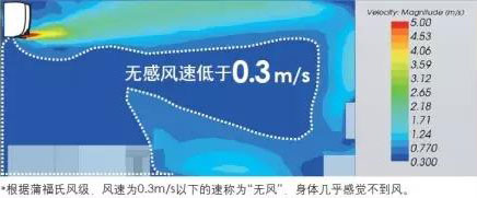 無感:向上送出的氣流,使室內(nèi)快速到達(dá)所需溫度的同時(shí)避免直吹人體的不適感,在人員活動(dòng)區(qū)域形成大面積的無感區(qū)域。