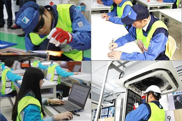 大金立志創(chuàng)建最高的售后服務(wù)品質(zhì),除通過開展技能比武大賽外,開展各類活動(dòng)持續(xù)提高售后人員的技能和服務(wù)質(zhì)量,力求確保在任何時(shí)間、任何地點(diǎn)都能為客戶提供始終如一的高標(biāo)準(zhǔn)技術(shù)服務(wù),滿足客戶需求。開設(shè)“售后服務(wù)大學(xué)”,不斷對(duì)員工開展服務(wù)技能的提升培訓(xùn);組織技術(shù)考核,包括理論考試、實(shí)操考試、進(jìn)行技術(shù)評(píng)定,并設(shè)立了技術(shù)等級(jí)工程師認(rèn)定制度。