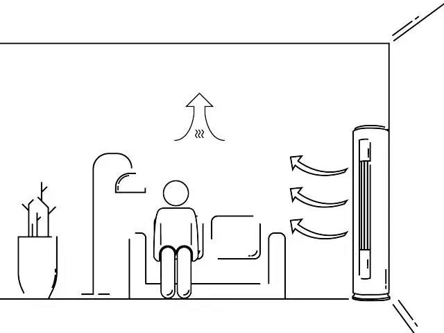 制熱時(shí),橫擺葉向下送風(fēng)。當(dāng)室內(nèi)溫度接近設(shè)定溫度時(shí),風(fēng)量不變,智能降低出風(fēng)溫度,進(jìn)一步提升室溫的同時(shí),抑制熱氣流上浮。