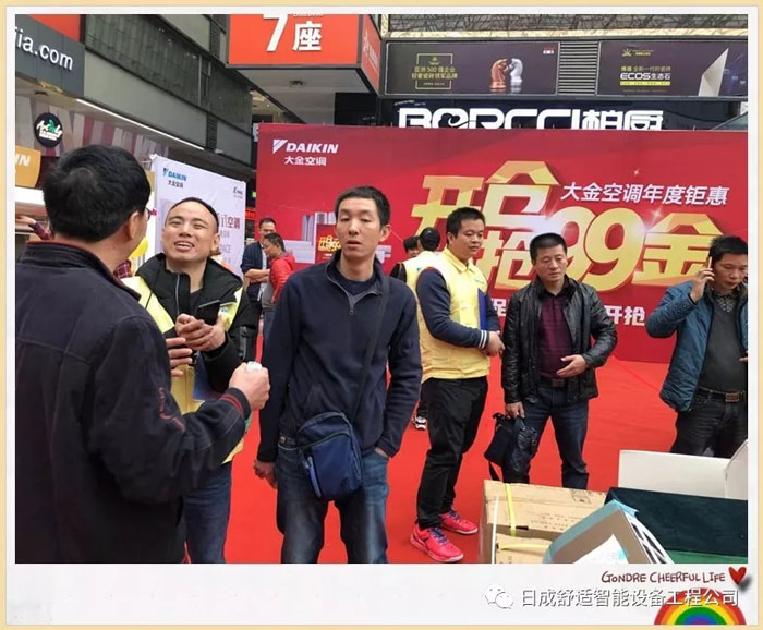 活動時間為上午的9時正,但8點多就迎接了我們的第一位客人,天氣難不了我們,更難不了我們忠實粉們,在此我向你們真心說聲“謝謝”,太感謝你們對成日公司的支持,對大金空調(diào)的厚愛!