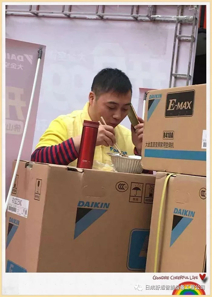 回眸昨天,寒冷,饑餓都抵擋不了小黃人的熱情,早早布置好現(xiàn)場,為啥?就是為了大金空調(diào)的粉絲們,可以更快地購買到自己喜歡的空調(diào)!
