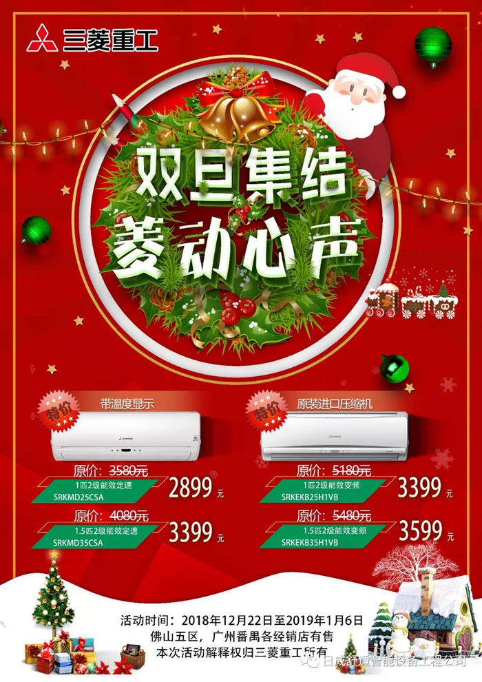 我家的代理空調(diào),除了你們喜愛的大金空調(diào)外,還有三菱重工空調(diào),雙旦的到來,重工空調(diào)亦搞搞新意思,讓你們雙重開心!
